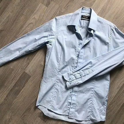 Dressmann skjorte i størrelse L, laget av bomull. Skjorten har mørk blå farge og er designet for menn.