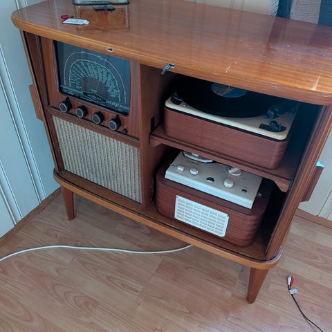 Radioskap fra 50 tallet i teak.Selges hbo 1500
