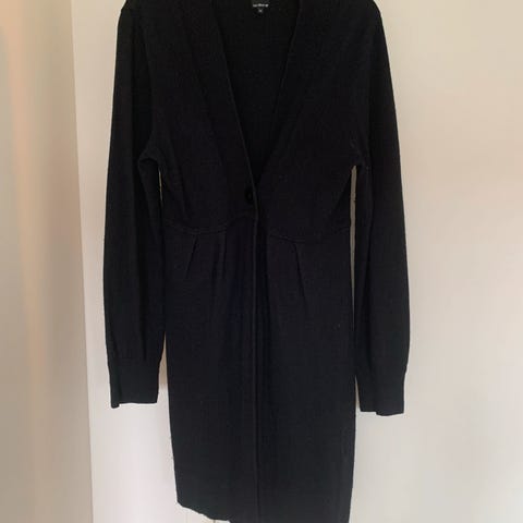 Selger en veldig pent brukt lang tynn ulljakke fra merket Tricot i str. L. Jakken er laget i 100% merinoull. Kjøpt på butikken Deguy. Jakken har fire knapper og igjenkneppet får man en markert midje. Jakken har en fint formet bue nede.Ermene er 3/4 lange og er litt vide. Dette er en klassisk lang ulljakke som man vil få glede av i mange år.