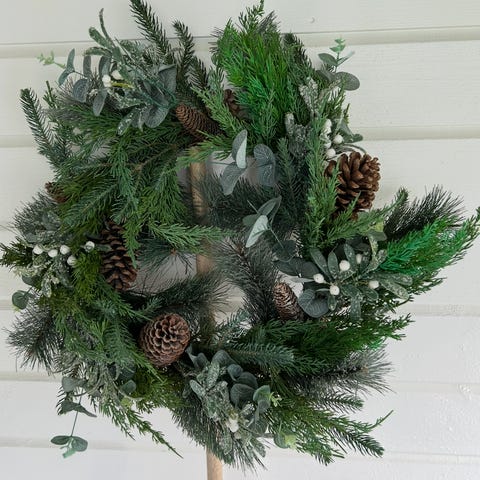 Hjemmelaget krans med kongler og nøtter