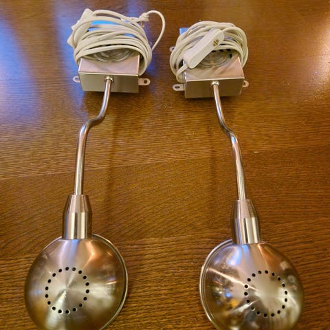 Tre retro lampeskjermer selges samlet.
