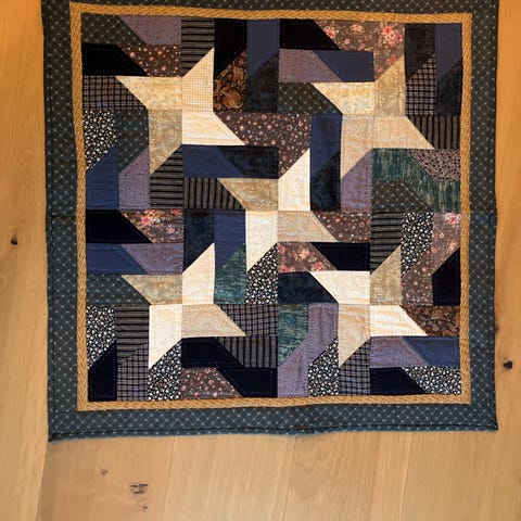 Nydelig vattert, quiltet koseteppe i duse farger