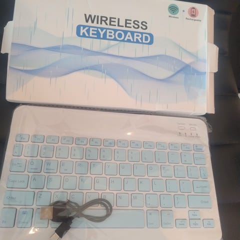 Veldig behagelig tastatur, trådløst. X-en var dessverre løs (!) og er nå forduftet. Knappen fungerer likevel.