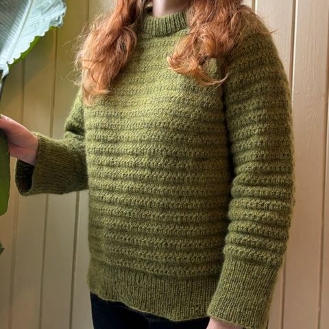 Håndstrikket silk-mohair genser med tre kvart arm.