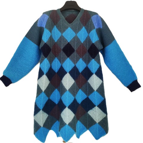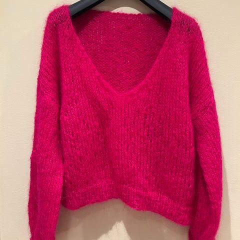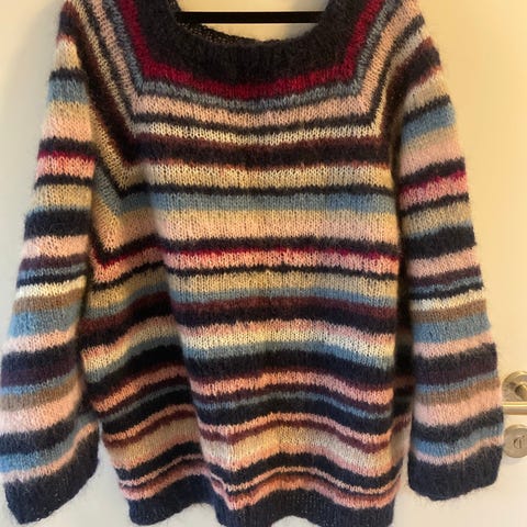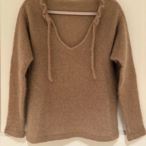 Egen design med flotte detaljer/mønster på bryststykket og avslutning på armen. Se bilde. Bredde hel lengde og arm kan sees på bildene. Mykt silk mohair garn fra Sandnes. Super julepresang 🎄