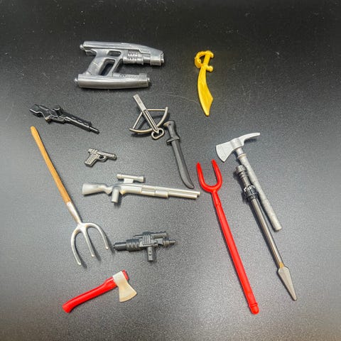 Søkeord: Playmo, leke, leker, samling, gamle leker, gevær, bajonett, lekegevær, soldater, vill vest, cowboy, jakt, deler, detaljer,