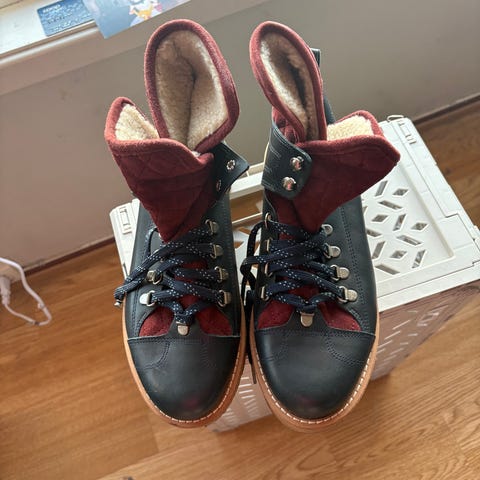 De har noen små merker på fronten av skoene . Se bildet . Ellers pent brukt . Selges fordi de er for store for meg . Porto kommer i tillegg hvis de må sendes
