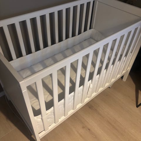 Babyen din sover trygt og godt i denne sprinkelsenga. Laget av massiv bøk, et slitesterkt, holdbart og fornybart naturlig materiale som både er bra for lommeboka og miljøet.