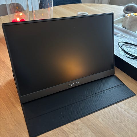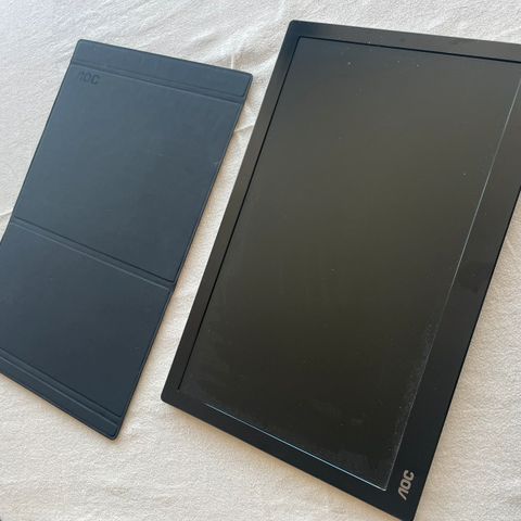 Full HD, HDMI og Type-C. Perfekt som ekstra skjerm til laptop, mobil og spill. Leveres komplett med kabler, og lærdeksel.