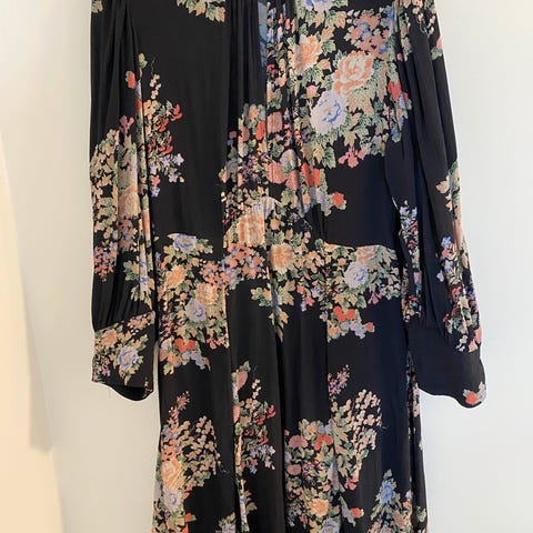 Lekker byTiMo kjole i str. L. Brukt kun en gang i bryllup. Svart farge med blomstrete mønster. Overdelen er litt gjennomsiktig med sorte blonder.