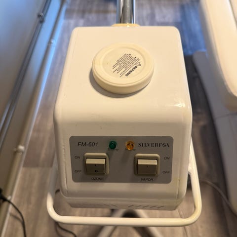 Denne vapozonen ( damp/ steamer ) har jeg brukt i hudpleiebehandlinger i flere år. Den kan hentes på Frogner i Oslo. Se bilder