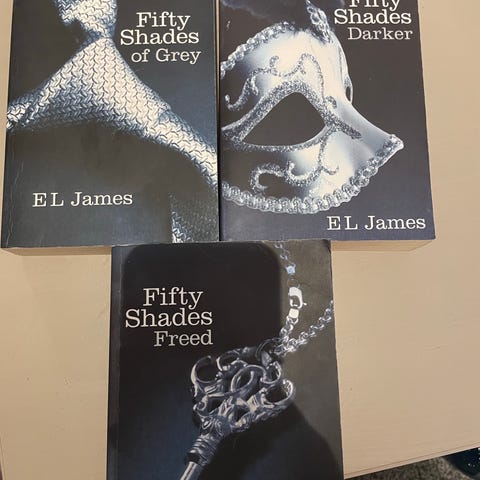 E.L. James Fifty Shades of Grey bokserie bestående av tre bøker.