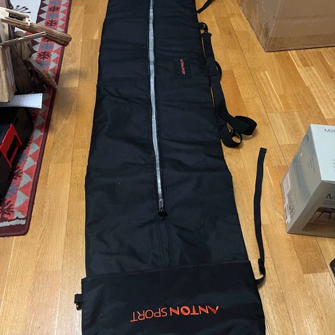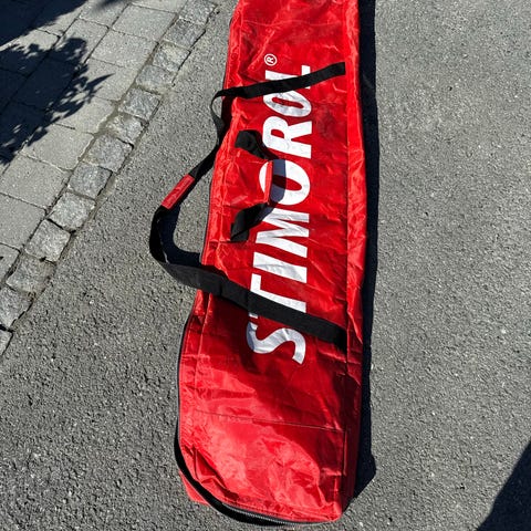 Atomic Bag Alpini rød og svart farge. Designet for oppbevaring og transport av ski og staver.