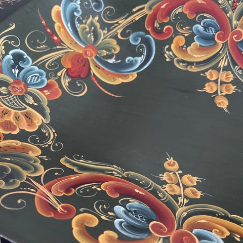 Rosemalt tallerkenhylle i tre med 5 boller