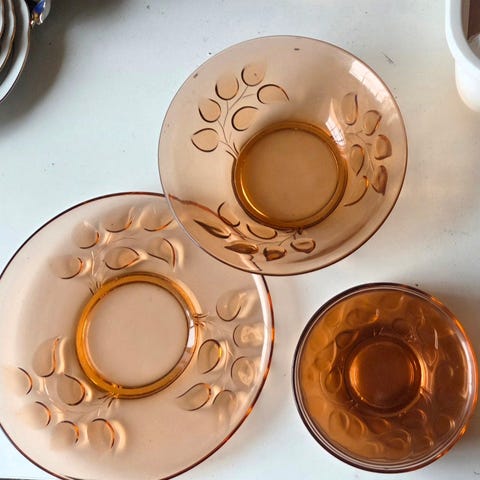 Vintage! Arcoroc FLEUR boller, fat, kopper