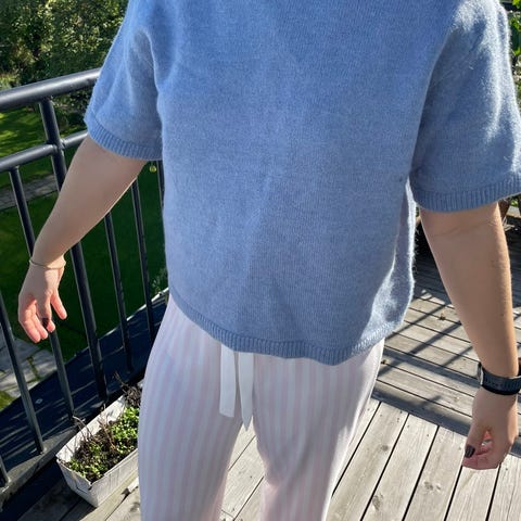 Nydelig premium quality genser fra Gina med halvveis åpen rygg og knyting bak. Selges da jeg dessverre ikke tåler ull. Brukt en gang!