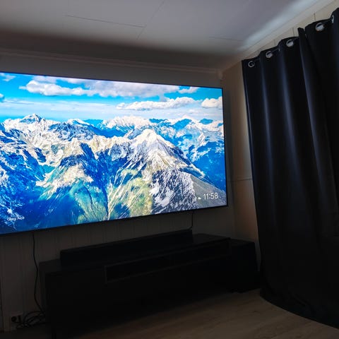 • 98-tommers skjerm – stor og imponerende visning for film, sport og spill