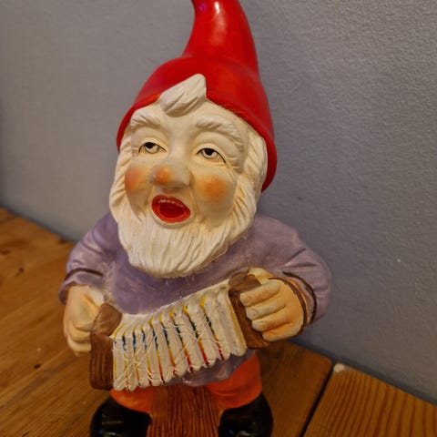 Eie nisse med trekkspill og stubbe vase