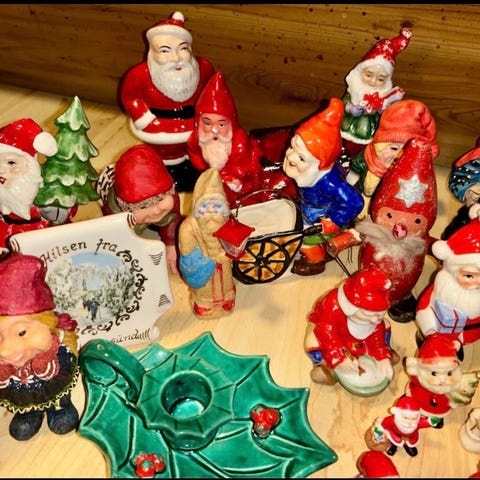 Egersund Eie vintage kjeramikk nisse med trekkspill og trestamme som vase .16×13cm .Litt hvit på nesetippen og på endene av trekkspillet ,ellers hel og fin .