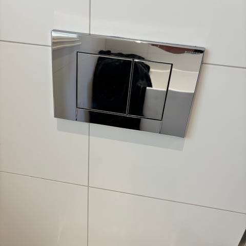 Grohe spyleknapp til vegghengt toalett. Fargene krom