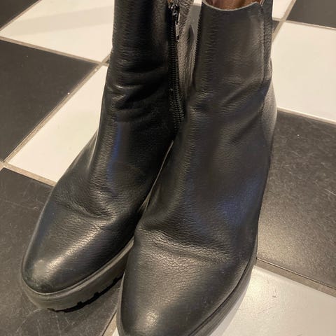 Pent brukte skinnsko med mykt ullfor og glidelås i siden! Normal i størrelsen, kun brukt noen få ganger. Normalpris: 1999,-