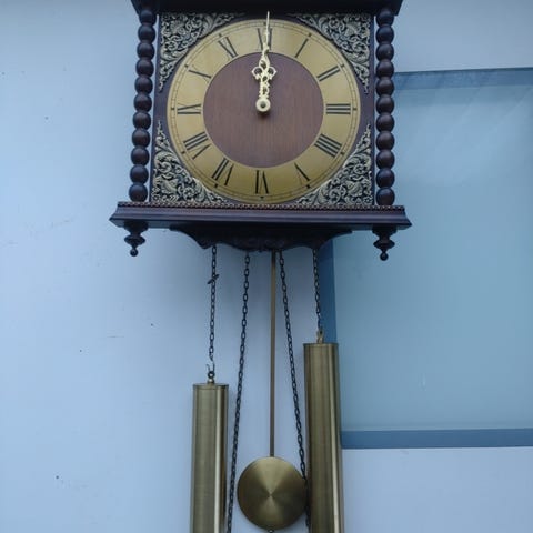 Tallskive i tre 30*30 cm. Full lengde med begge lodd helt opptrukket 130 cm. Pen klokke!