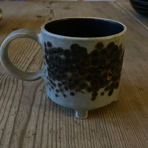 Liten tekopp (ca. 200 ml) med tilhørende tallerken.