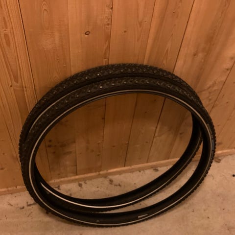 Et par Nye og ubrukte veldig gode vinterdekk Schwalbe Marathon Winter sykkeldekk med dimensjon 700x38C (28"), utstyrt med pigger for bedre grep på is og snø. Dekktypen er Active, designet for vinterbruk og økt sikkerhet på glatte underlag.
