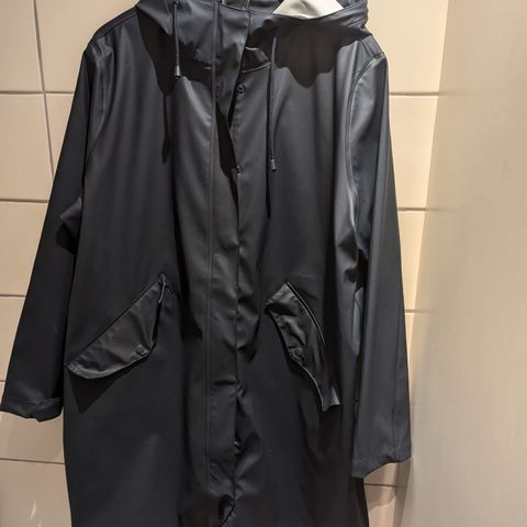 Vanntett og komfortabel regnjakke med hette, flere lommer, glidelås og knapper foran. Kan vaskes.