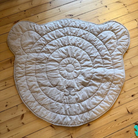Leketeppe til baby som også kan brukes som oppbevaringspose til leker.