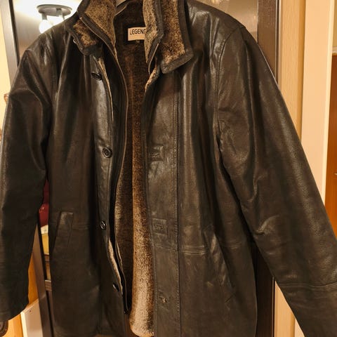 Vintage Jakke i brun farge, laget av skinnmateriale.