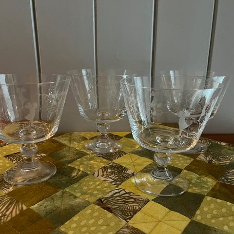 2 sjeldne martiniglass med delfinstett, som nye, til dessert også, 15 cm