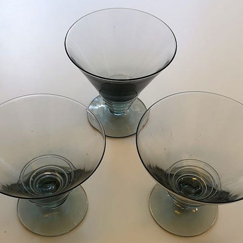 2 sjeldne martiniglass med delfinstett, som nye, til dessert også, 15 cm høye, Ø 11,5 cm.