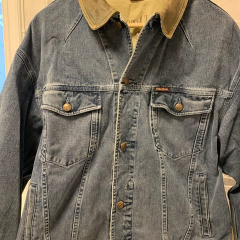 Vest til herre i ekte lær, str 50, selges kr 250,-