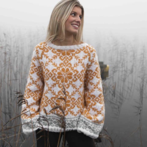 Strikkepakke str M, i de fargene som er på bildet. Følger med oppskrift.
