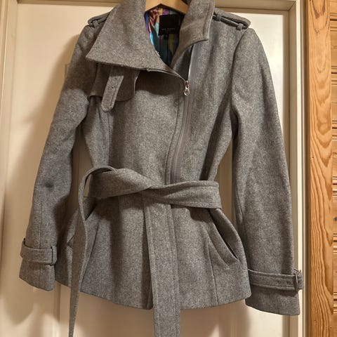 Ted Baker genser i størrelse S for dame, laget av en ullblanding bestående av 47% ull, 38% viskose, 10% polyamid og 5% kasjmir. Genseren har en grå farge og detaljer på ermene som gir et unikt utseende.