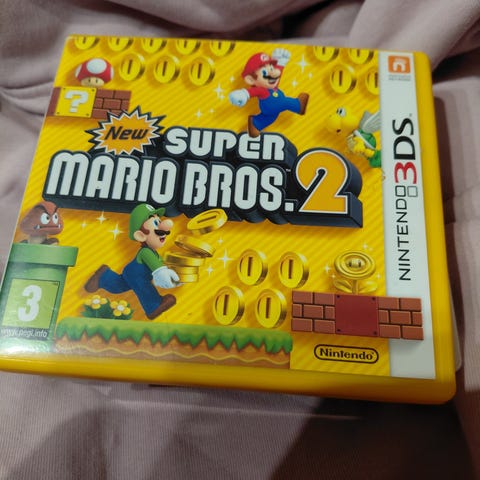 Nintendo New Super Mario Bros. 2 er et Nintendo 3DS-spill. Spillet har flerspillermodus med solo- og samarbeidsspill, og inkluderer også Coin Rush-modus. Passer for aldersgruppen 3 år og oppover.