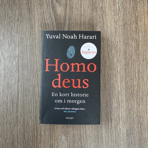Homo Deus, Yuval Noah Harari, fremtidsstudier, teknologi, kunstig intelligens, AI, bioteknologi, filosofi, samfunn, idédebatt, Sapiens forfatter, transhumanisme, digitalisering, menneskets fremtid, verdenshistorie, utvikling, global politikk, populærvitenskap, sakprosa, Bazar forlag, bestselger, modernitet, fremtidens utfordringer, antropologi, samfunnsanalyse.