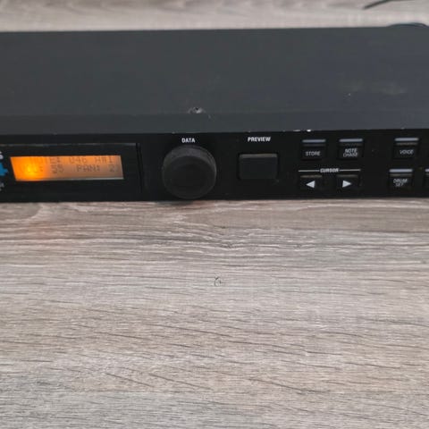 Waldorf Pulse 2 synthesizer med flere kontrollknapper og skjerm. Produktet inkluderer tilkoblingskabler. Enheten er designet for lydproduksjon og musikkkomposisjon.