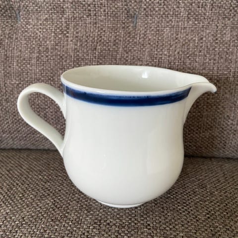 Porsgrund fløtemugge med rød kant, fra 90 tallet