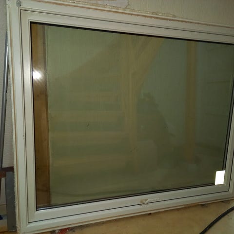 Helt nytt vindu som ble feil bestilt, fra 2010. Størrelse største høyde 76 cm, minste høyde 29 cm. Bredde 220 cm. Alle utvendig karm mål. Ferdig malt karm i hvit. Dobbelt glass