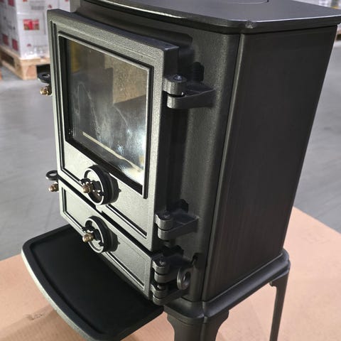 Perfekt for deg som ønsker en moderne og miljøvennlig vedovn med panoramautsikt til flammene. Alt er klart for henting – du får en komplett løsning med ovn, rør og plate.