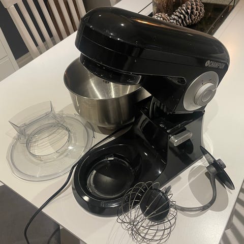 Denne sorte KitchenAid-maskinen er nyoverhalt og i svært god stand. Den er renset innvendig og utvendig, ny smøring er lagt inn, slitedeler er byttet, og alle justeringer og stramminger er gjort. Til slutt er den polert, så den både ser bra ut og fungerer som den skal.