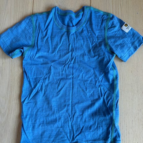 Blå ulltrøye i 100% merinoull. Pent brukt.