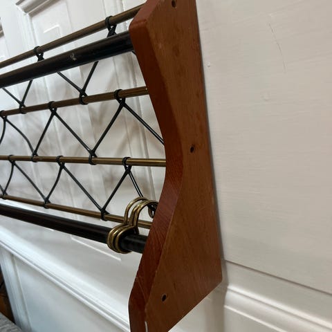 Nyrestaurert Teak entrehylle/nøkkelhylle/telefonhylle fra 60 -70 tallet. 2 skuffer og stringhylle med opphengskroker.