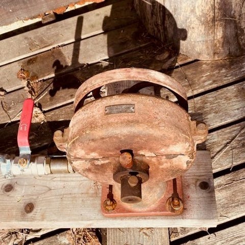 Flygt vannpumpe med PTO-drift, brukt til overføring av væsker. Pumpen har en robust konstruksjon med to innløp og en PTO-aksling for tilkobling til kraftuttak. Passer til landbruk eller industriell bruk der mekanisk drift er tilgjengelig.brukt til traktor