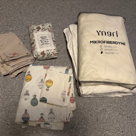 Dundyne og sengesett delvis ubrukt, størrelse 65*80