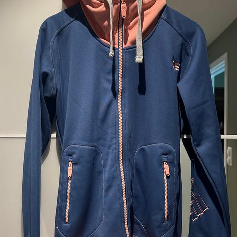 Tøff og tykk rosa hettegenser med lys blå detaljer i str. L. Ubrukt. Selges for 150kr