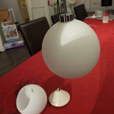 Ikea Skottorp stålampe selges. Den er kun brukt noen få ganger og har derfor ikke mye slitasjemerker, har noen bøyinger på innsiden av skjermen pga flytting, men er ellers i god stand. Kjøpt i 2020/ 2021. Selges i pga plassmangel