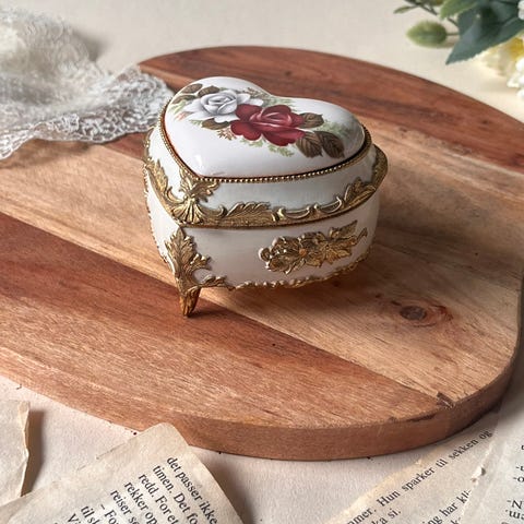 glass rosa smykkefat skjell pynt oppbevaring vintage shabby chic retro cottagecore